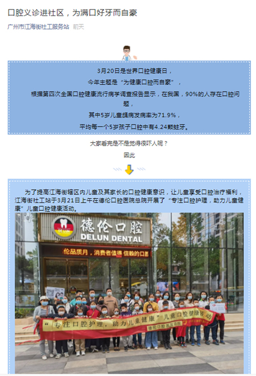 2021年德伦口腔发起的广东爱牙工程-德伦品腔,更加注重为广州市民提供品质服务,更多地承担社会责任,更多地致力于社会行动。