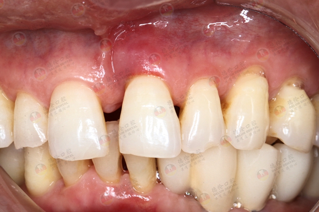1、牙龈改变:正常牙龈粉红色、菲薄而紧贴牙面,附着龈有点彩。患牙龈炎时游离龈和龈乳头呈鲜红或暗红色,龈缘变厚,龈乳头圆钝,不再紧贴牙面;由于结缔组织内炎性浸润及胶原纤维消失,使原来致密坚韧的牙龈变得松软脆弱,缺乏弹性;同时由于牙龈肿胀或增生,龈沟深度增加,但上皮附着水平仍位于正常的釉牙骨质界,即出现假牙周袋。