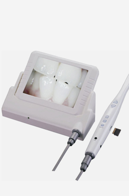 口腔内窥镜是特殊构造的摄像镜头,可以伸入口腔,在计算机或电视屏幕上显示清晰及放大图像。