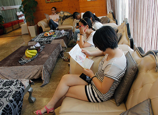 徐小姐在大厅了解《家庭口腔健康管理师计划》相关介绍