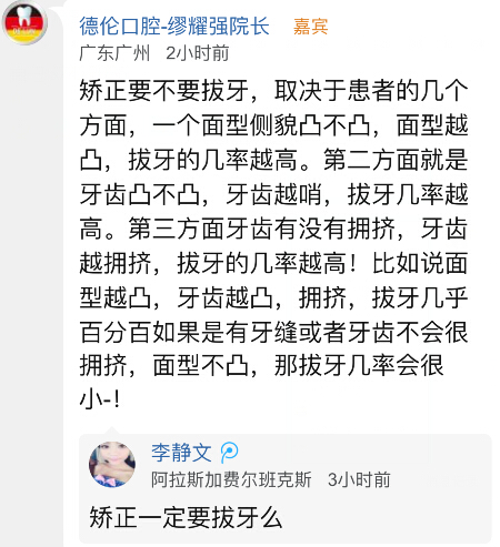 当天下午提问非常积极踊跃!很多网友就“矫牙能改变脸型吗、矫正一定要拔牙吗、二三十岁还能矫牙吗”等问题进行提问,缪院长也很耐心地就网友的问题进行一一回答。小编就跟大家一起来回顾一下当天的在线问答吧!