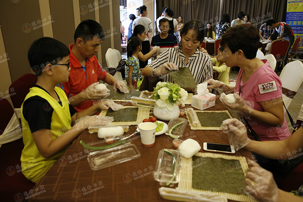 暑期矫牙公开课:寿司DIY环节,小朋友们都玩的敲开心