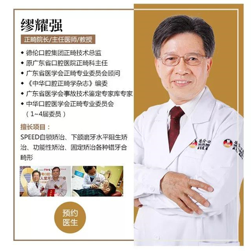 缪耀强院长从事口腔正畸临床工作已有36年,曾在北大口腔医院和悉尼大学牙学院进修深造,并多次赴美国、法国、台湾、香港、日本等地参加国际正畸研讨会。1993年始历任广东省口腔医院正畸科副主任、主任。多次主持开展新技术新业务:例如自锁托槽矫治在国内第一批临床应用就是由他率先开展的。作为第一作者,在国内外专业杂志发表论文30余篇,且被全球口腔正畸学界著名杂志J.Clin.Orthod刊登,主编《SPEED矫治技术》。