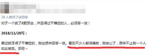 但是注意一点,不是拔牙后所有的疼痛都是干槽症哦,拔牙后出现干槽症的概率较低,“中奖”概率不大。