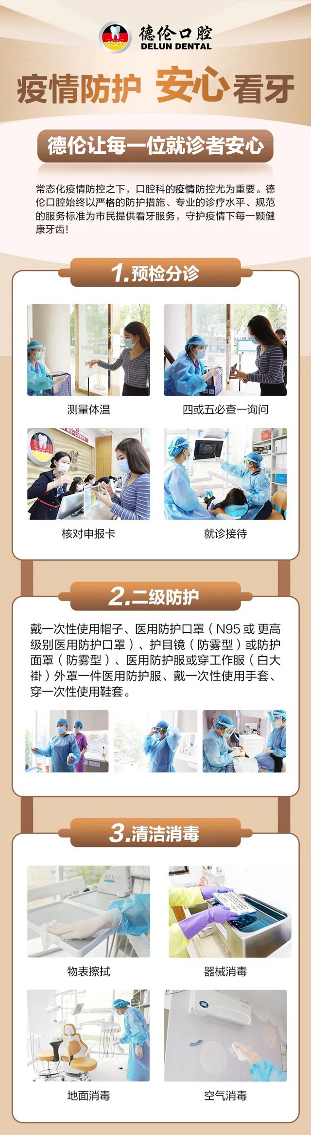 疫情当下,口腔科的防控尤为重要。德伦口腔始终以可靠的防护措施、专业的诊疗水平、规范的服务标准为市民提供看牙服务。