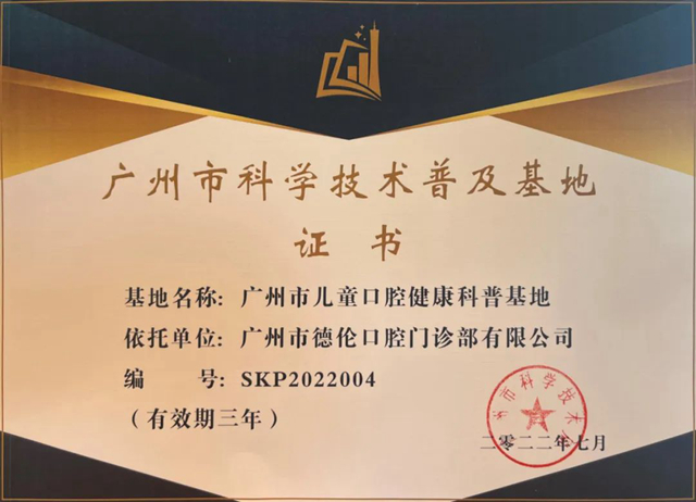 贺德伦口腔获广州市科学技术普及基地荣誉称号