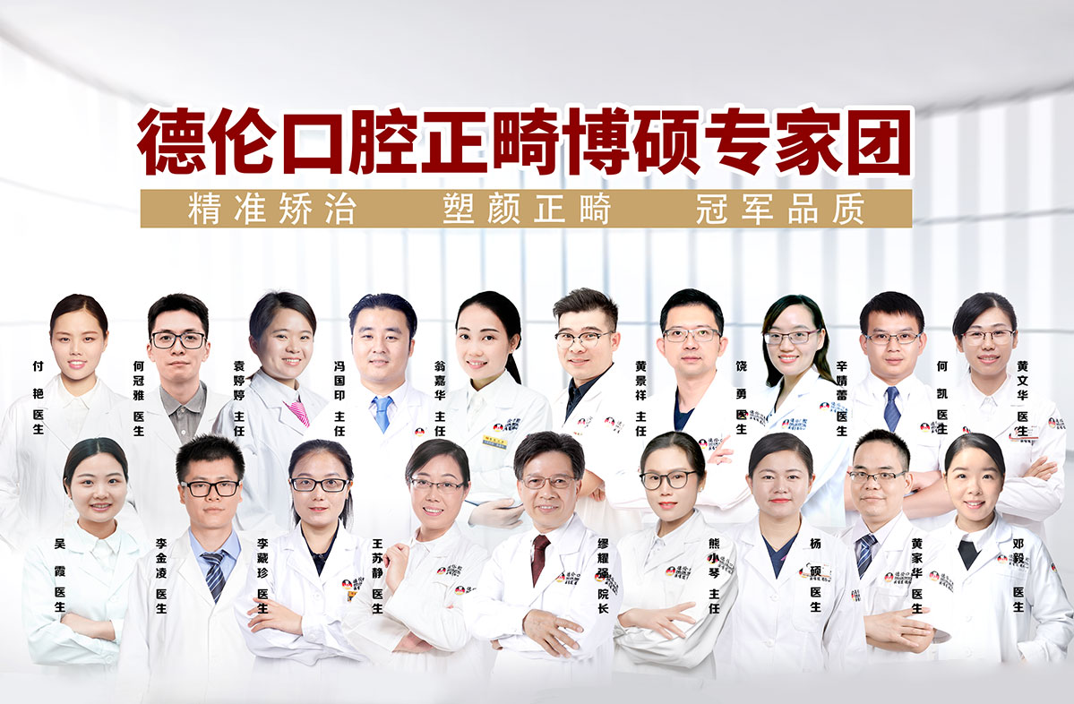 德伦拥有18名正畸博硕团队,内含中国正畸教科书级专家、南方医科大学硕士生导师、亚运中国代表团口腔保障营专家。在正畸三大领域—固定矫正、隐形矫正、舌侧矫正均有代表性学术带头人和培训讲师,实力雄厚。