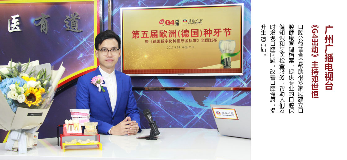 《粤口腔 粤健康 》2018羊城口腔健康,公益普查万里行活动于1月24日正式启动。造福千万羊城市民,普及上万个家庭,派出千万个家管福利。金牌主持马志海、广州广播电视台主播林洁、德伦口腔6大院长携手德伦口腔新老顾客相聚一堂,共同见证!德伦口腔凭借优秀的技术资质、医师团队、服务质量,获得广州广州电视台《G4出动》节目组的认可,双方达成战略合作关系。