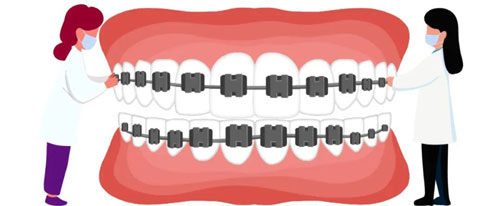 俗称为“钢牙套”,由固定粘接在牙齿的金属托槽和钢丝组成,由托槽对牙齿施加力量,引导牙齿移动到理想的位置上。每次复诊时医生需要监控牙齿的移动、咬合,口腔清洁情况,进行钢丝更换等操作。